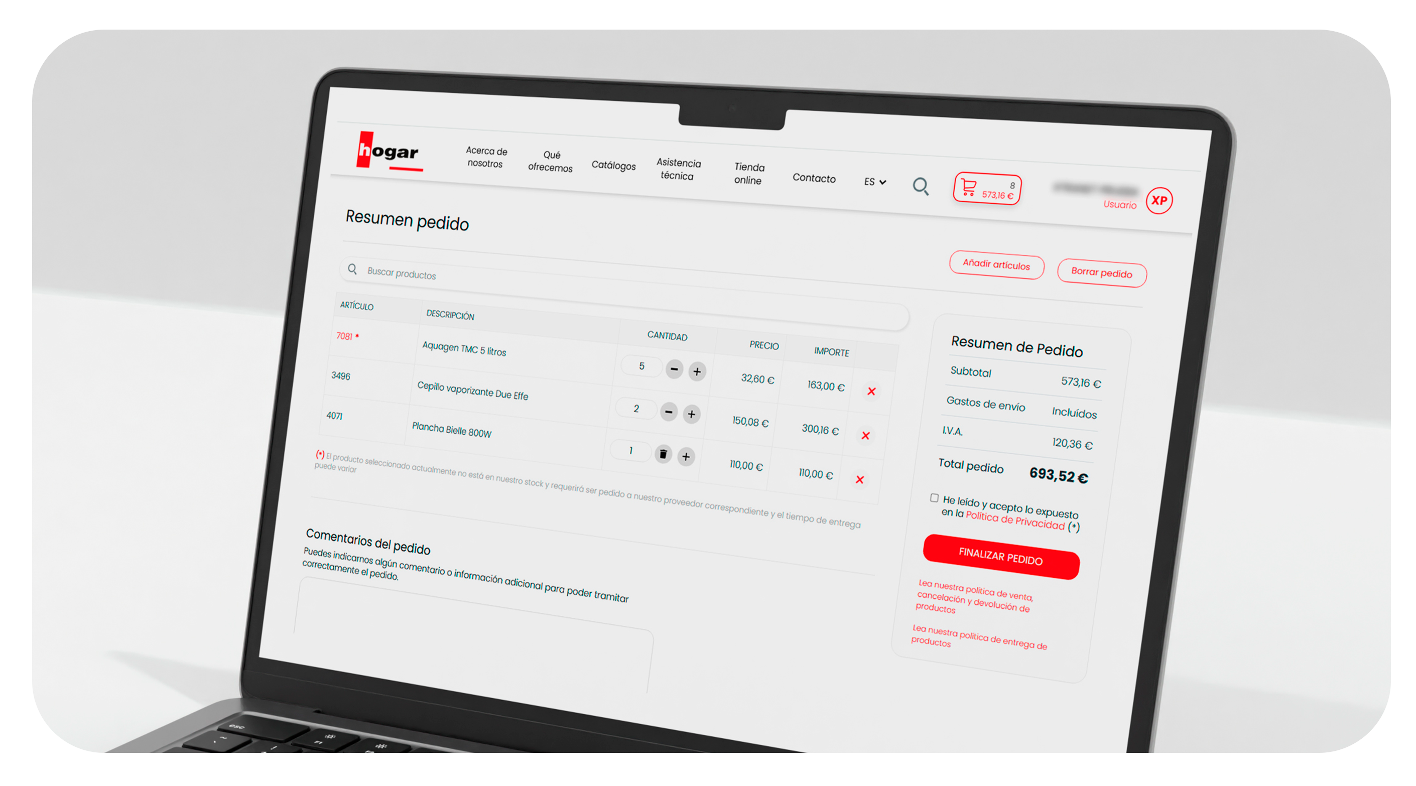 Digitaliza tus procesos de compra, gana autonomía y mejora la eficiencia de tu negocio. Empieza hoy mismo a utilizar el Área de Cliente de Hogar Tintorero y comprueba lo fácil que puede ser gestionar pedidos y documentación.