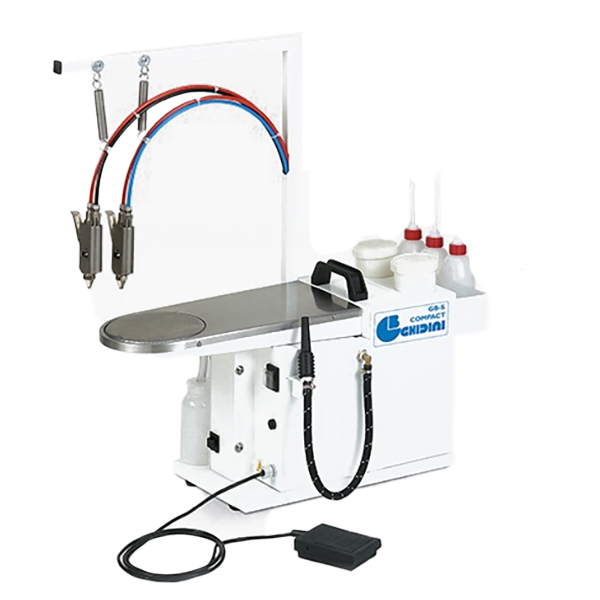 Presión trabajo de aire: 6-8 bar. Consumo de aire 30 l/min. Motor aspiración 100 W. Dimensiones de trabajo 400 x 200mm. Voltaje: 230V. Requiere compresor no incluido.